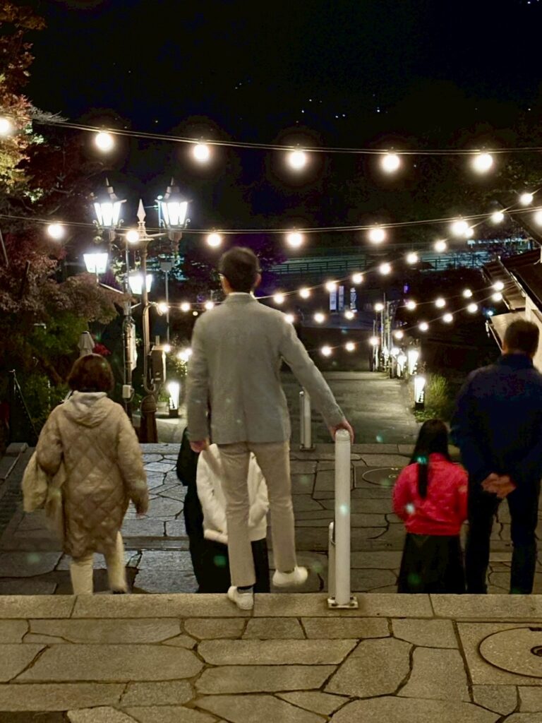 宴会のあとは、伊香保の石段街を散策し、紅葉ライトアップをを訪れました。