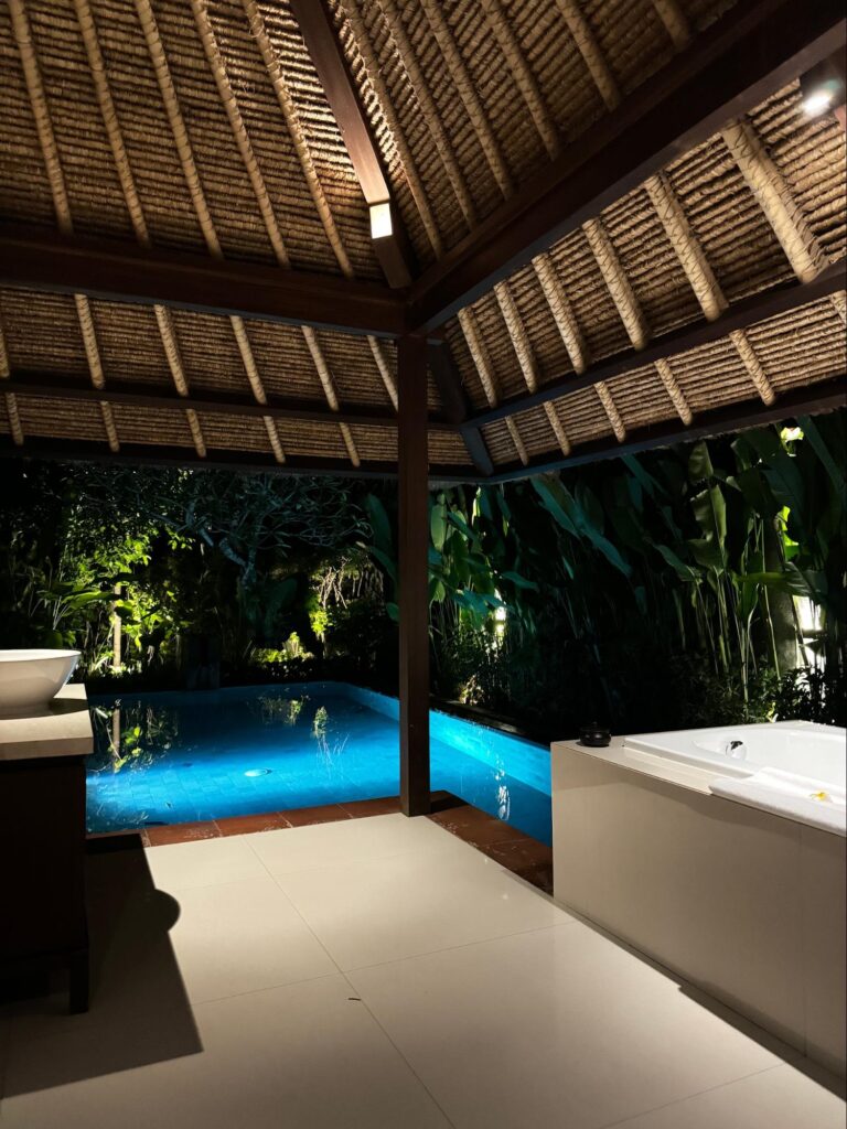 宿泊はプライベートプール付きのラグジュアリーヴィラ。