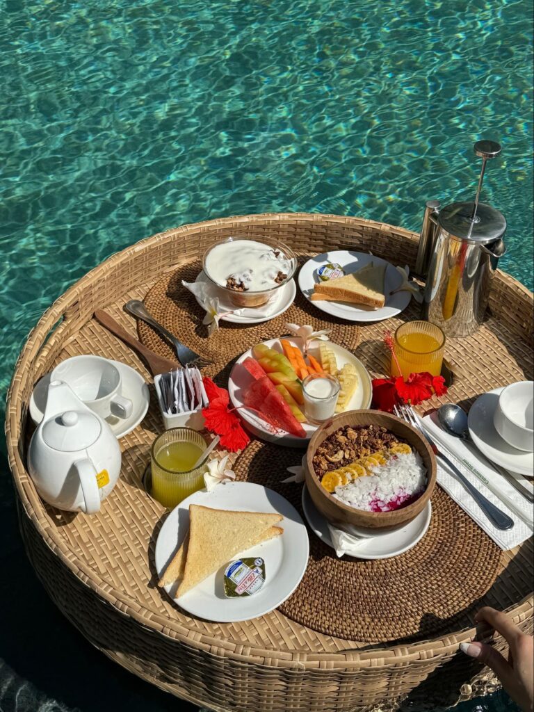 プライベートプールで楽しむフローティングブレックファースト、