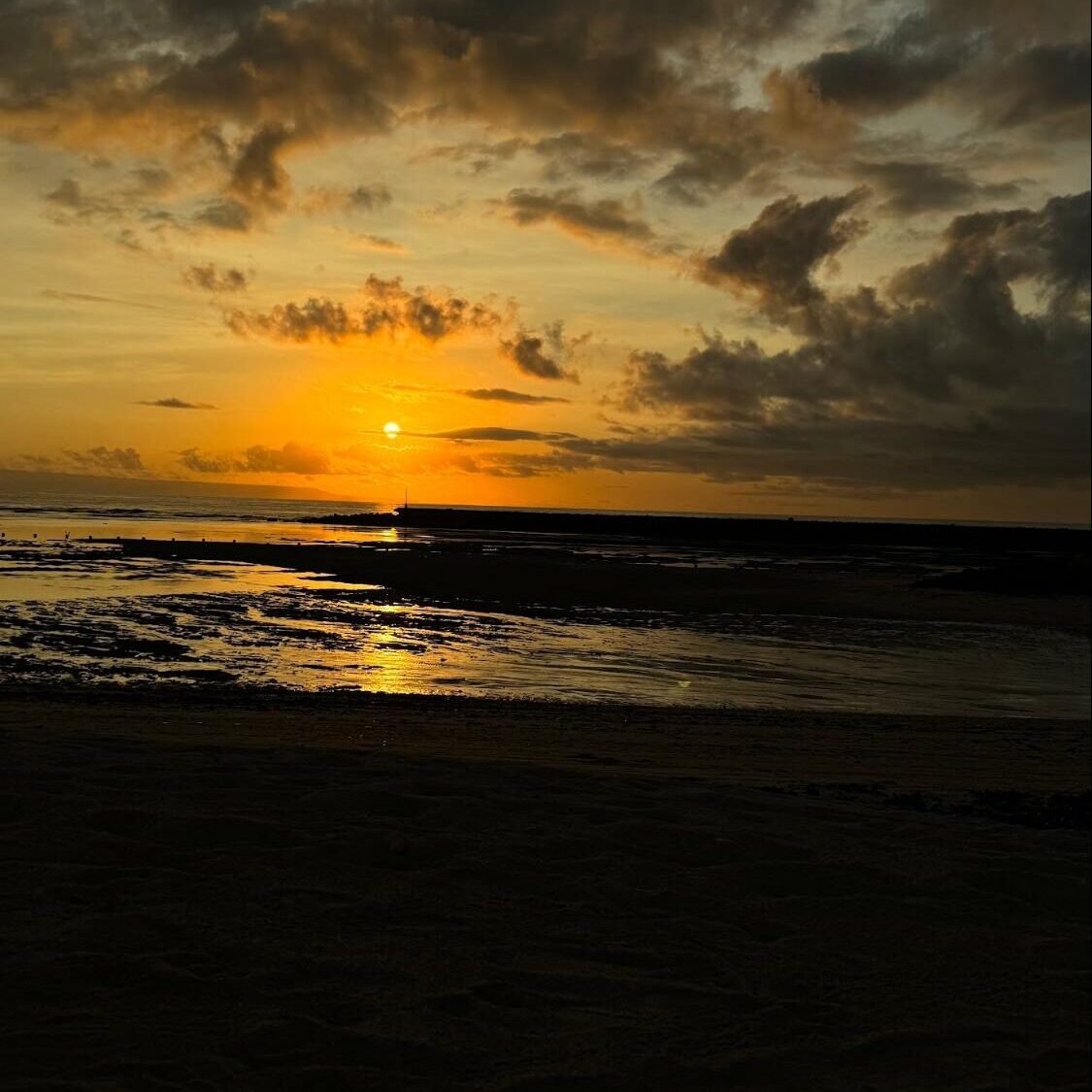 水平線に沈む夕陽とともに、一日の終わりを静かに過ごしました。