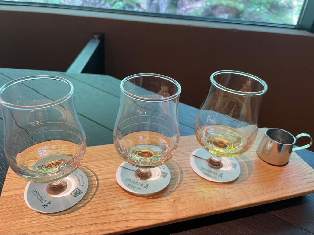 希望者は少量のテイスティングを楽しみ、白州の味や香りを確認されていました。