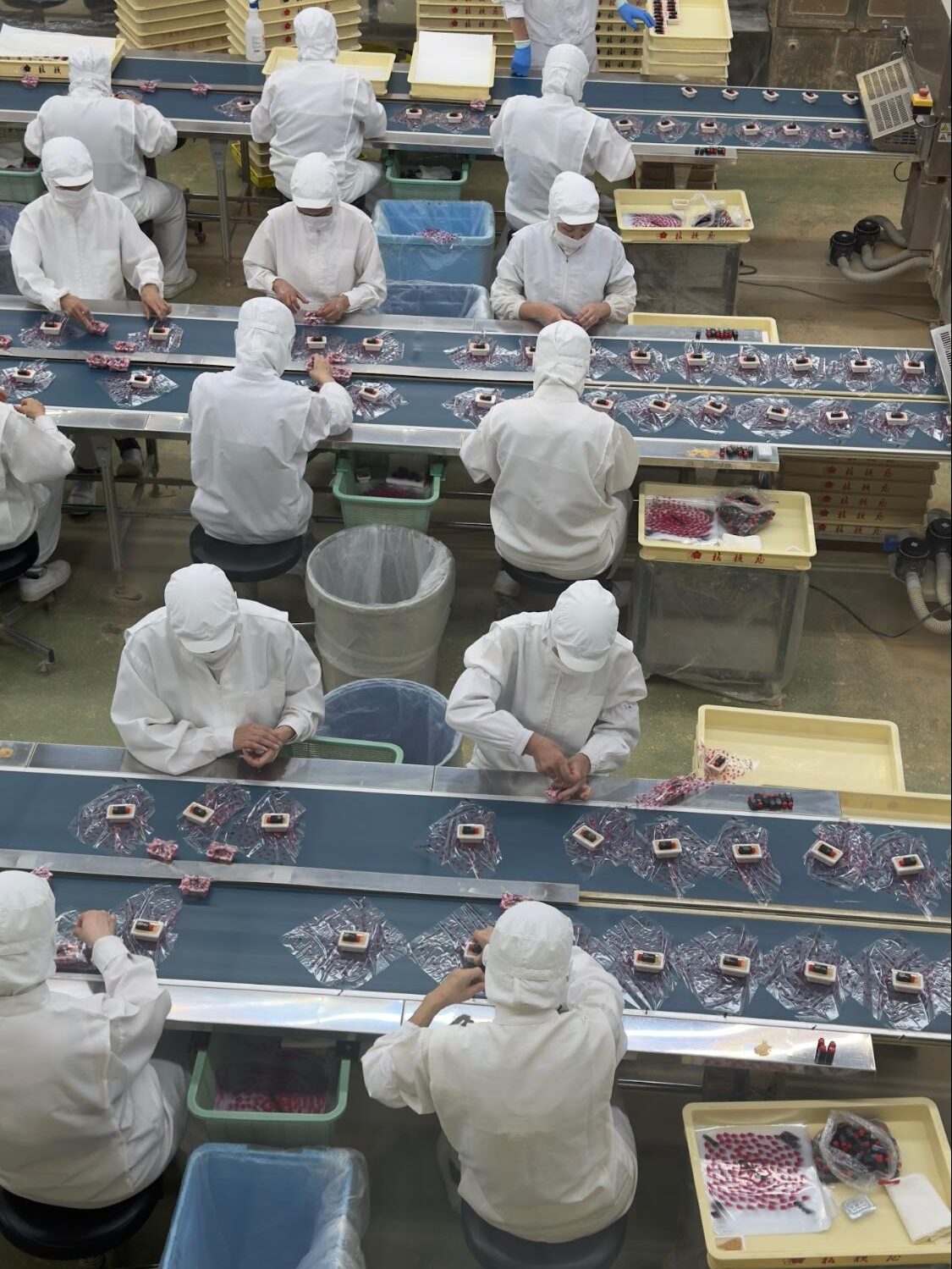 職人が一つひとつ丁寧に包装する工程をガラス越しに見学。